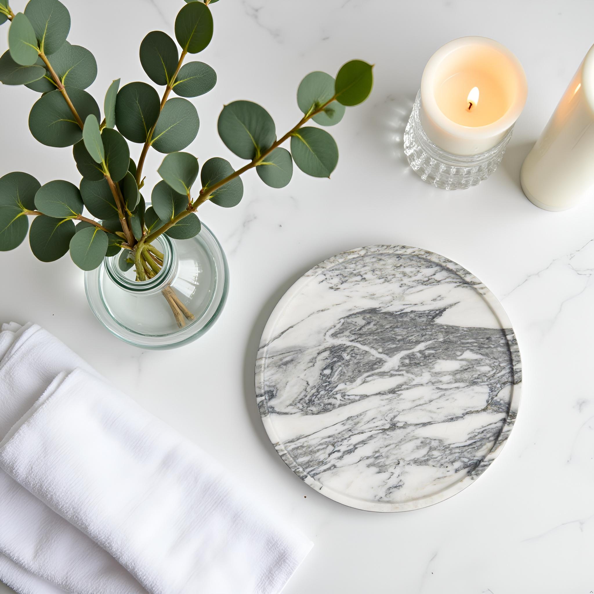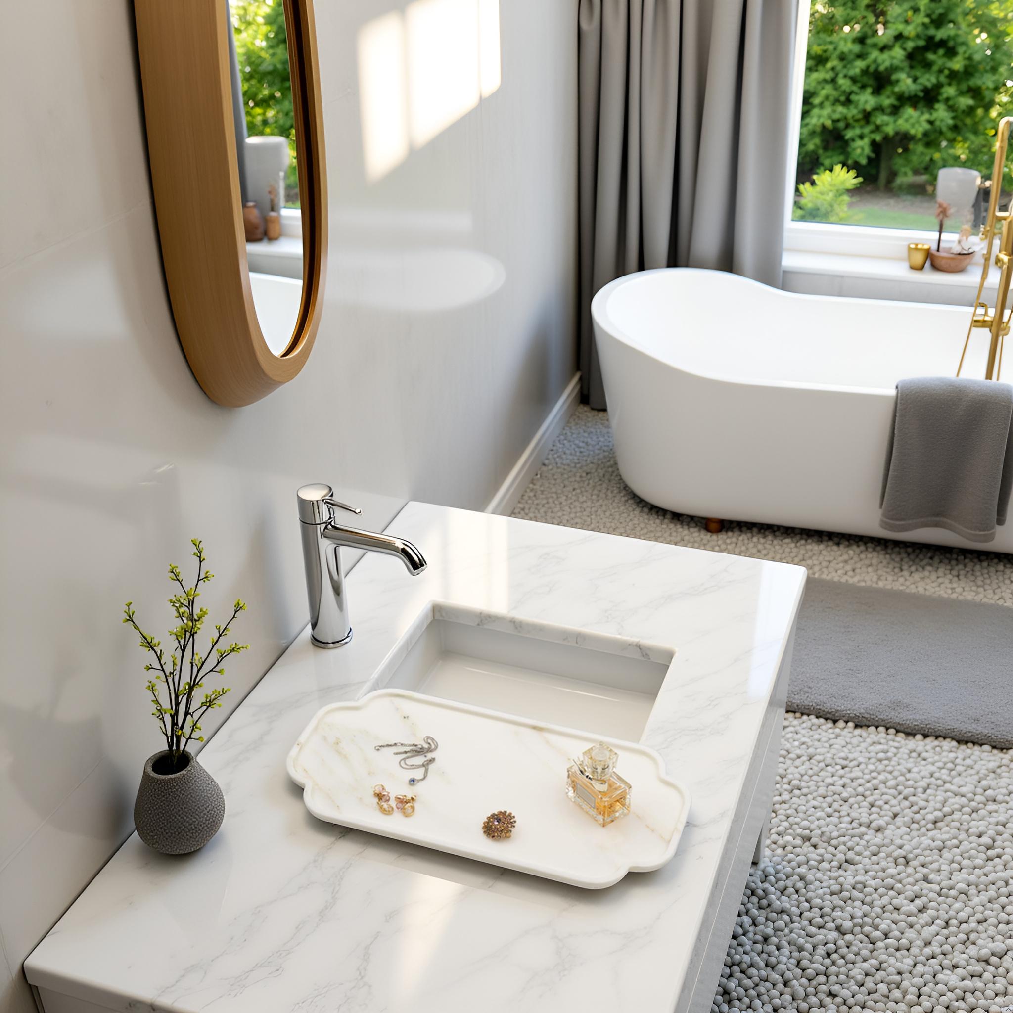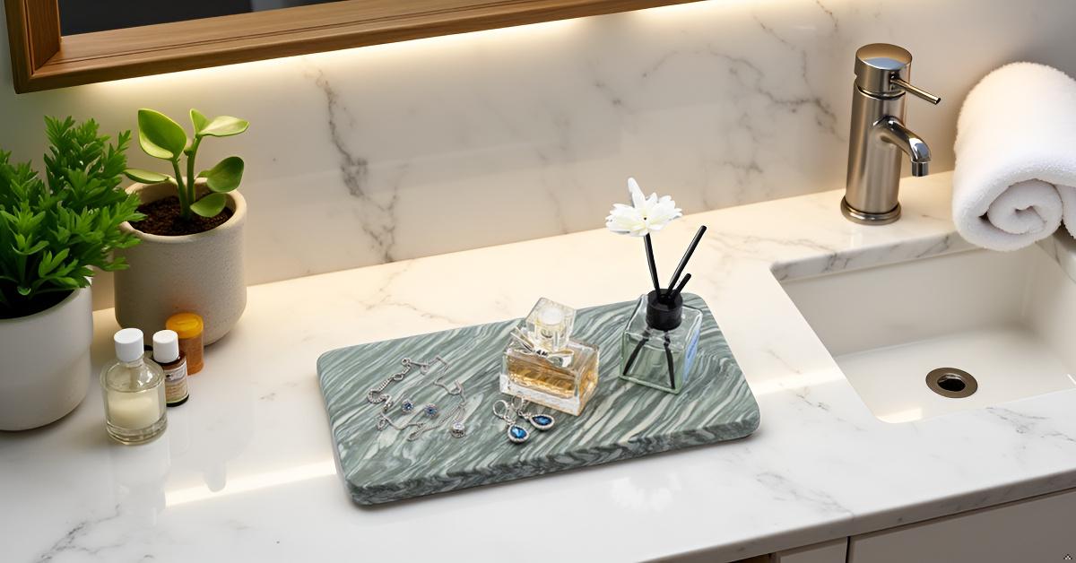 - 【 Versatile for Every Space】 Use as a marble bathroom tray for perfumes, a candle tray for living rooms, or a stone sink tray in kitchens. Polished surface and non-slip pads protect countertops while adding luxury to bathrooms, dressers, or office desks."