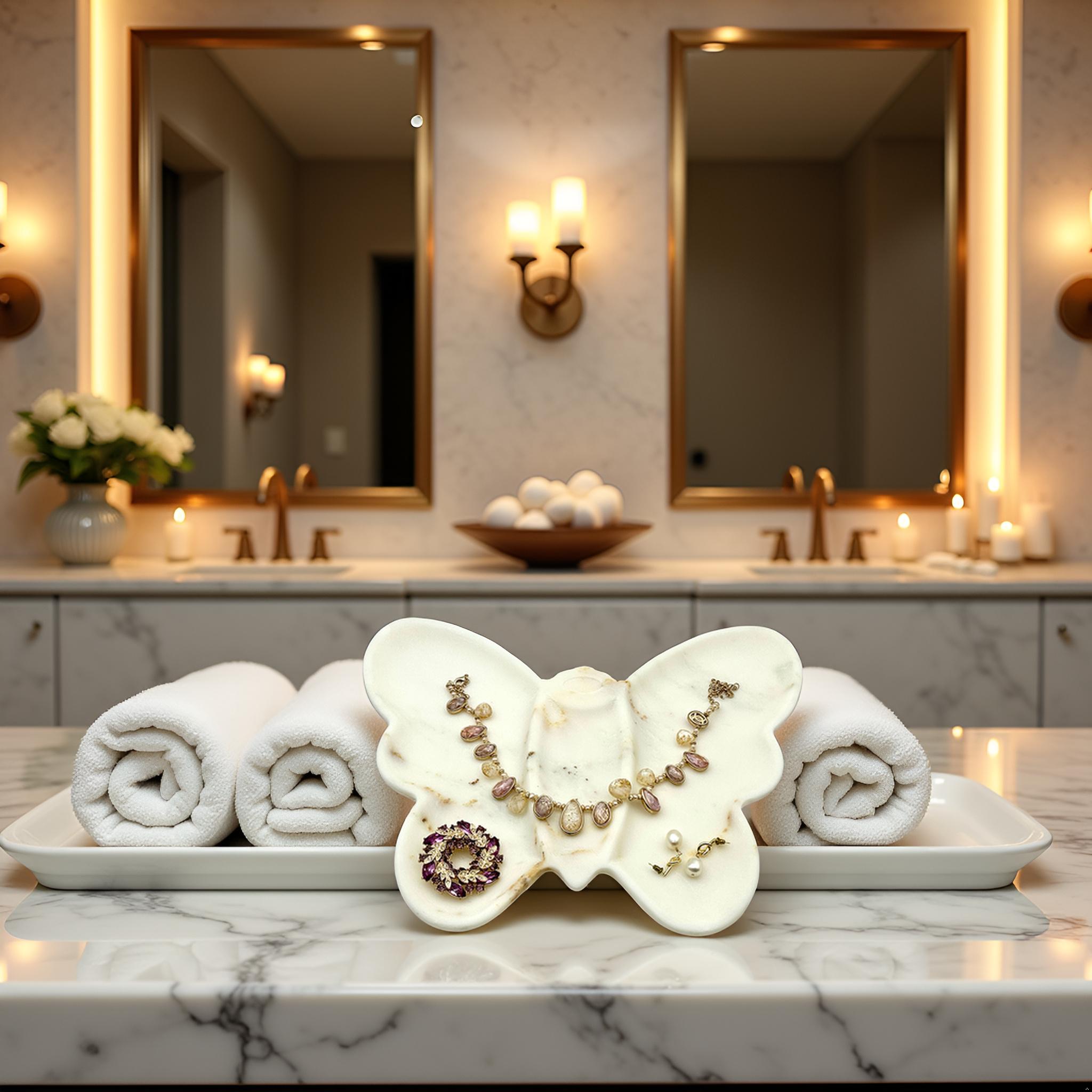 Shop nowMarmor Real Natural Marble Bathroom Tray for Perfume, Candles, Jewelry Stone Vanity, Bathroom & Kitchen Counter Organizer and Home Decor (Calacatta Gold Marble Butterfly Grid Plate)