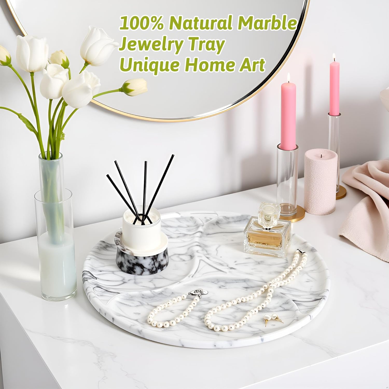Marmor 100% Natural Marble Bathroom Tray for Perfume, Candles, Jewelry Stone Vanity, Bathroom & Kitchen Counter Organizer and Home Decor
